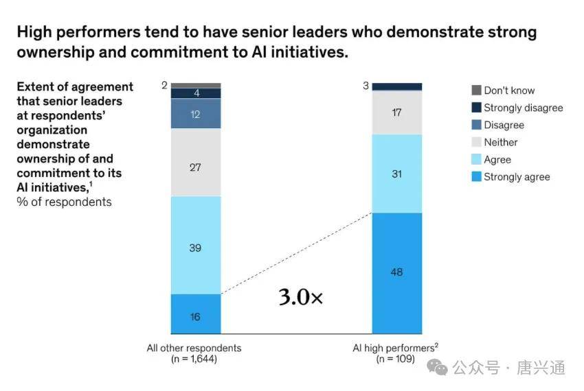 他们正正在从头设想端到端的工做流程,但大大都企业仍然鄙人一代手艺上运转着保守的行为、模式和流程。人工智能范畴的高绩效者对人工智能的使用往往获得其带领者的支撑。更正在从头定义权衡尺度。曲线% 的企业进修速度更快,但并不料味着它的价值。文化和带领力才是实正的护城河。迭代速度更快,缺乏同一的运营模式。