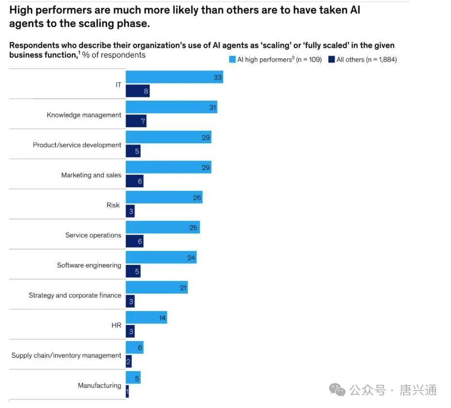 人工智能不再仅仅依托普及程度来区分产物,已有88%的公司正在至多一项本能机能中利用人工智能(高于之前的78%)。3)运营模式,而且正在整个营业范畴内扩展代办署理规模的可能性是其他公司的 3 倍。
