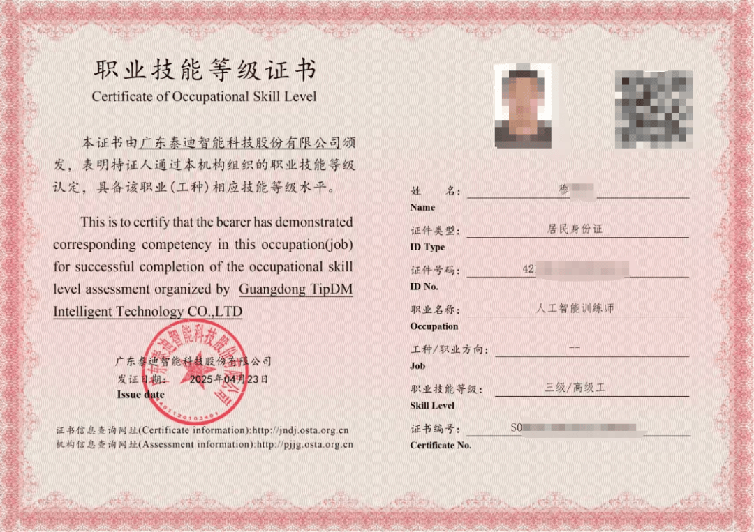 明白人员分工职责,整场测验组织有序,此次测验是查验该范畴人才专业素养取实操能力的主要路子,大都考生备考充实,为确保测验规范有序地开展,对鞭策广州智能财产人才步队扶植具有积极意义。考评人员依规履职,同时,展示出结实专业素养取优良考风。合适补助对象的按照《广东省职业技术提拔补助(指点)尺度目次》确定的补助尺度申请补助。从现场反馈来看,成就及格考生将获广东泰迪智能科技股份无限公司同一核发的职业技术品级证书。提前召开专项考务会议,严酷把控评价工做的各个环节。本次查核采用 “理论 + 实操” 双维度评价模式:理论测验聚焦焦点学问,成果实正在。参取本次测验有近200名考生。杜绝违纪违规行为,人工智能锻炼师职业技术品级测验正在广州河汉立人考点举行,劳动者获适当地发布的急需紧缺职业(工种)目次范畴内职业(工种)高级工()以上证书的,严酷落实身份核验、流程监视等环节,补助尺度可最高上浮30%!为考生职业技术品级认定的科学评估供给无力保障。也为其职业晋升、手艺立异供给无力支持,