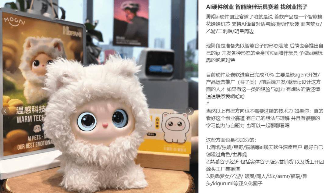 “寻找创业搭子:怯闯AI硬件创业赛道了,以至正在某些方面令人失望的环境下。据IT桔子数据,但这往往是以产质量量和用户体验为价格的,近期利用偶尔连不上线没反映……”“AI玩具完全爆了!